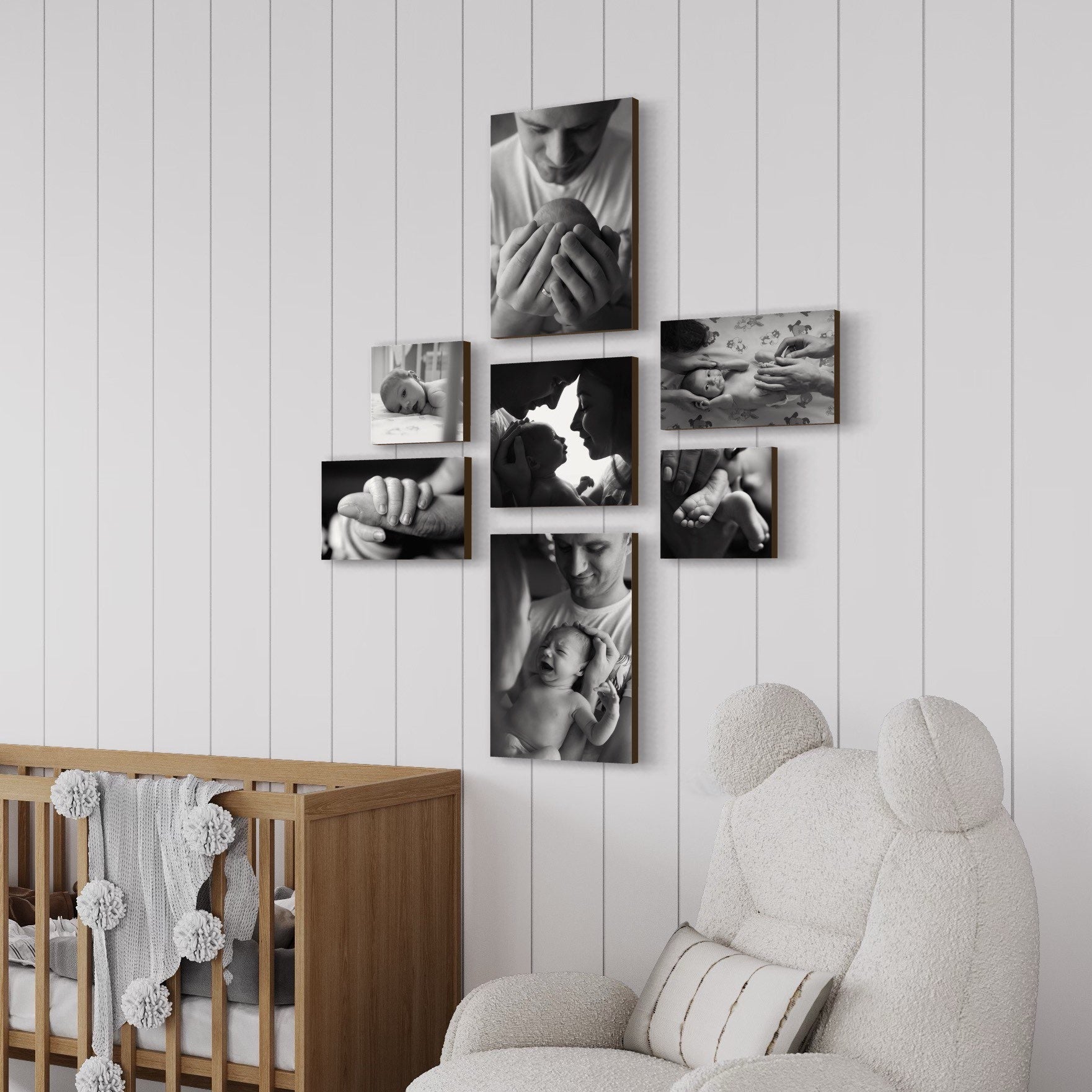 CraftPrint Whitebark Set offers a unique gift idea and a beautiful way to transform your favourite memories into natural wooden artworks. This premium set includes 3 square and 3 rectangle photo blocks (1 vertical and 2 horizontal), designed to create a stylish wall display with your most meaningful moments.